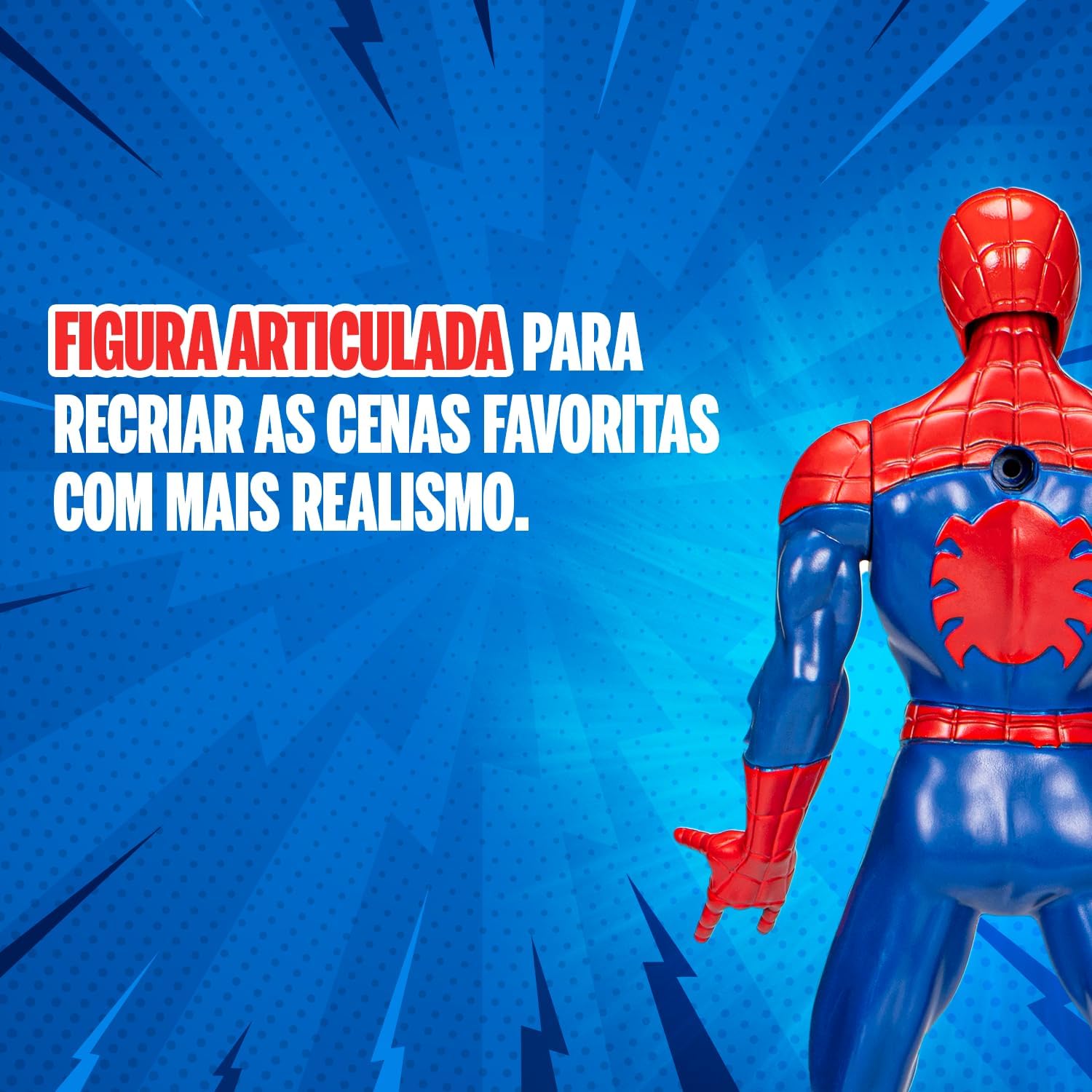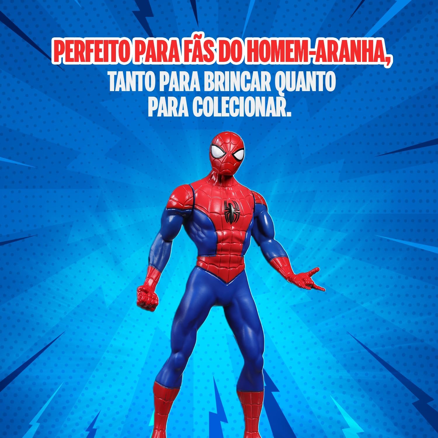 O AMIGO DA VIZINHANÇA CHEGOU. Com 24 cm de altura, este boneco do Homem-Aranha é inspirado no universo Marvel e traz o herói que escala paredes direto para as brincadeiras das crianças.