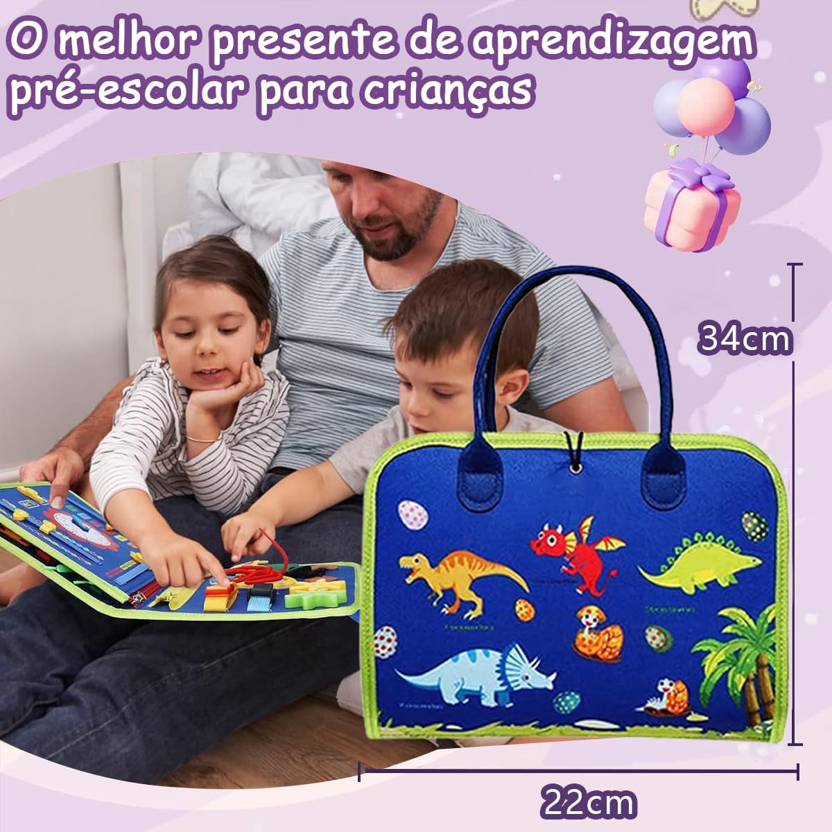 EXCELENTES BRINQUEDOS DE VIAGEM: Livro silencioso portátil. Leve e com design de alças, esse quadro de atividades para bebês é portátil para as crianças carregarem e brincarem.