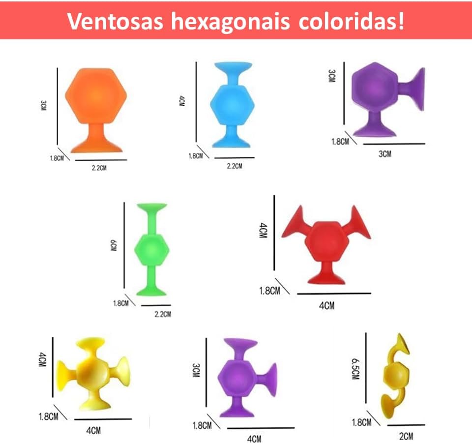 Brinquedo Conexão Hexagonal com Ventosas – Sensorial Pedagógico Montessori | 19 Peças O Brinquedo de Conexão Hexagonal com Ventosas é perfeito para estimular a criatividade, a coordenação motora e o desenvolvimento cognitivo das crianças de forma divertida e educativa. Inspirado no método Montessori, ele incentiva o aprendizado por meio da exploração, do toque e da experimentação. Com 18 unidades de silicone macio e flexível, as peças possuem ventosas que aderem facilmente a superfícies lisas, permitindo criar inúmeras combinações, formas e estruturas. Ideal para atividades sensoriais, desenvolvimento da lógica e estímulo da imaginação. Fabricado em silicone resistente, atóxico e seguro, é confortável ao toque e indicado para uso infantil. Destaques do produto: 18 peças hexagonais com ventosas Material: silicone macio, flexível e seguro Brinquedo sensorial e pedagógico Estimula coordenação motora e criatividade Inspiração Montessori Fixação em superfícies lisas Ideal para crianças Um brinquedo educativo que une aprendizado, diversão e desenvolvimento em cada conexão.