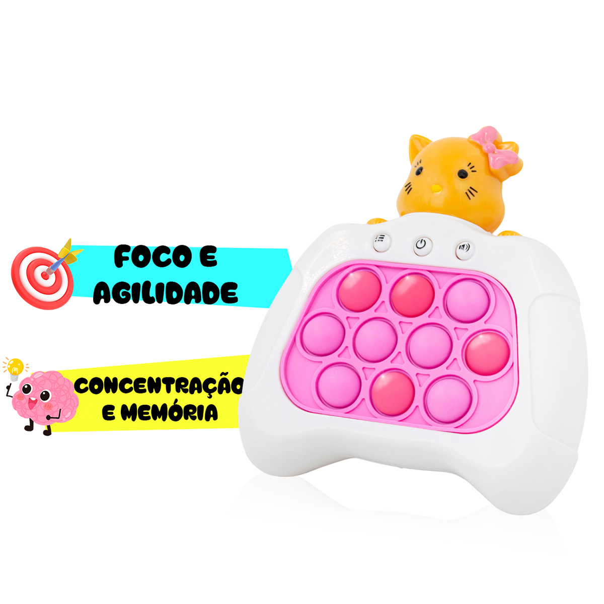 OBrinquedo Pop It Eletrônico é a versão moderna do popular brinquedo sensorial. Proporciona horas de diversão e entretenimento, sendo cativante e adequado para todas as idades. Emite efeitos sonoros e música para tornar o jogo mais envolvente, com botões sensíveis ao toque emitindo sons ao apertar. Possui diversos modos para variar a brincadeira, o quebra-cabeça estimula a memória e agilidade. Especificações Técnicas: – Modelo: Pop It Eletrônico – Material: Plástico, Componentes Eletrônicos. – Alimentação de Energia: 03x Pilha AAA – Dimensões Aprox.: 13cm (Largura) X 14cm (Altura) X 5cm (Profundidade) – Peso Aprox.: 130g Itens Inclusos na Embalagem: – 01x Pop It Eletrônico