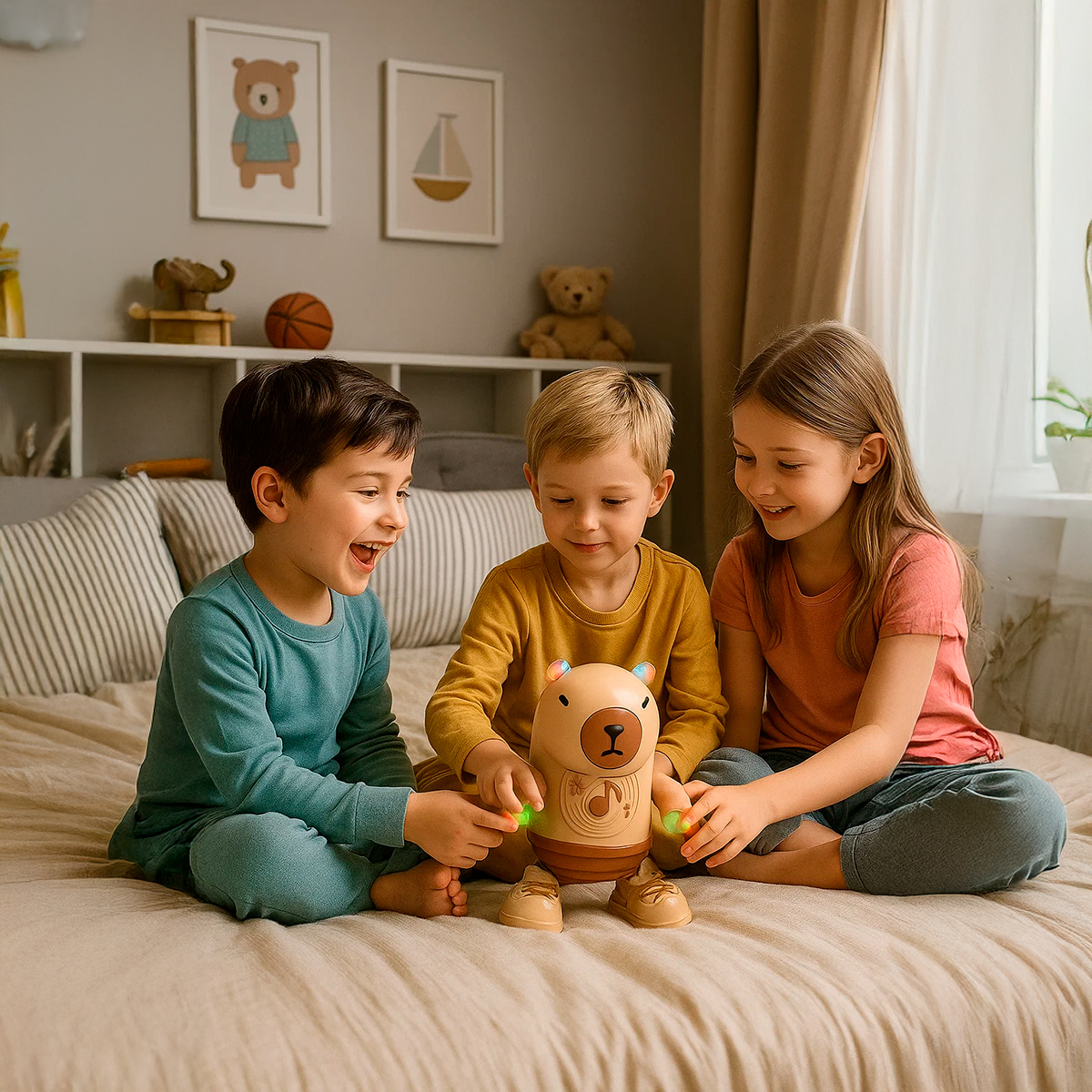 Apresentamos o Brinquedo Robô Capivara Dançante, a nova sensação que vai encher sua casa de alegria, música e luzes! Diversão garantida que estimula os sentidos e a imaginação. -Além da música e da dança, a Capivara Robô ilumina o ambiente com luzes LED coloridas e vibrantes. -Melhora a coordenação motora: Incentivando os pequenos a imitar seus movimentos de dança. -Um companheiro perfeito para momentos felizes em família. -Seus detalhes são suaves e adaptados para as mãozinhas pequenas, garantindo que a brincadeira seja sempre segura e divertida. – Formato adorável de capivara, com detalhes divertidos. Especificações Técnicas: – Modelo: Robô Capivara – Material: ABS/Componentes Elétricos – Dimensões Aprox.: 19,5cm (ALTURA) x 9,5cm (LARGURA) x 15cm (PROFUNDIDADE) – Cor: Bege e Marrom – Idade Recomendada: +3 anos – Luz LED – Fonte de Alimentação: 3 Pilhas AA (NÃO INCLUSAS) Itens Inclusos: – 01x Capivara Robô