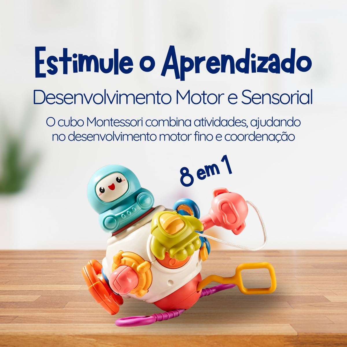 Estimulação Sensorial: Com 6 faces de atividades, cada uma oferece uma nova experiência sensorial, desde cores vibrantes até texturas diversas, ideal para o desenvolvimento da percepção visual e tátil.