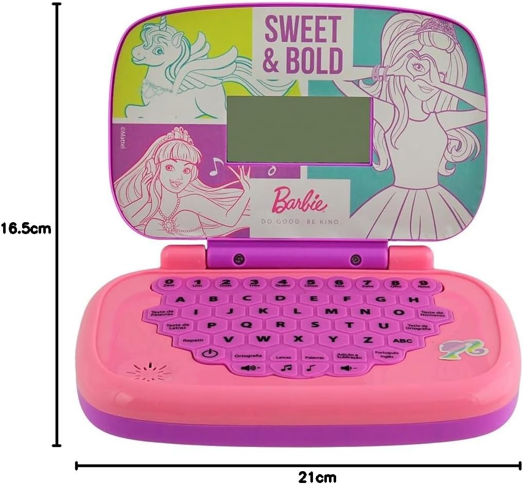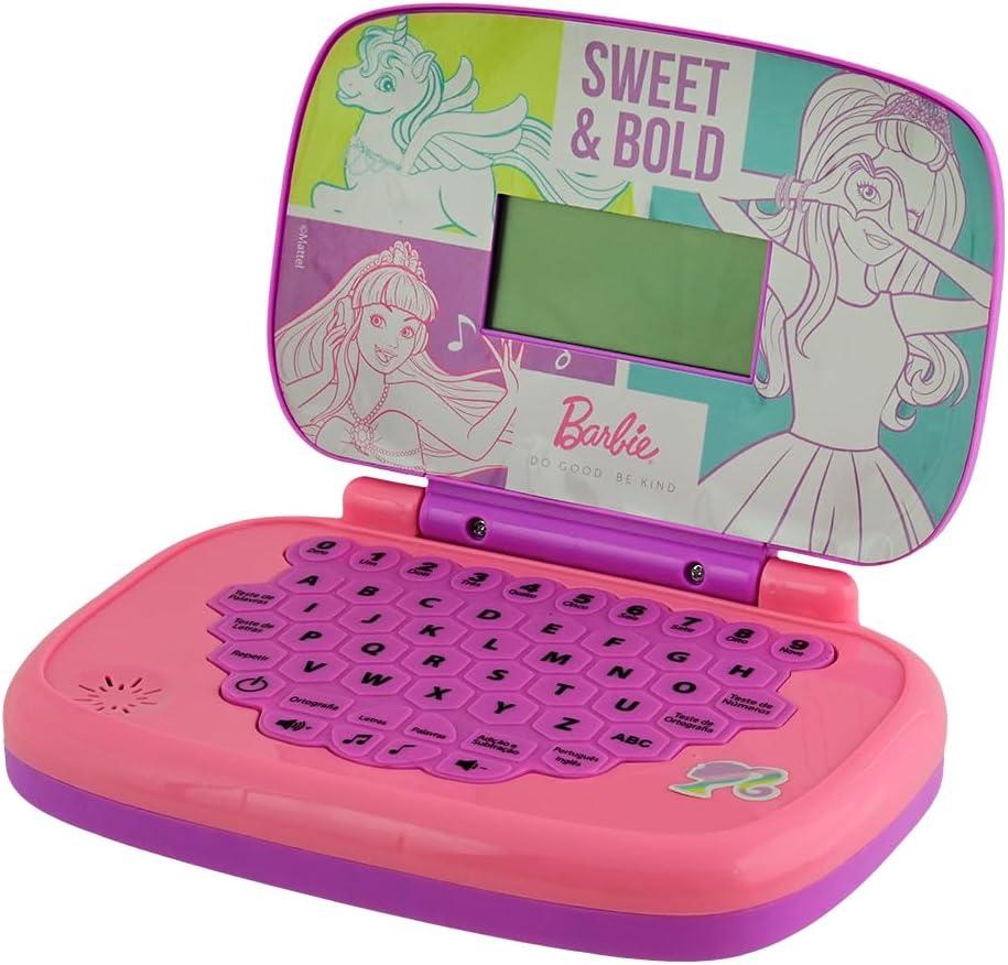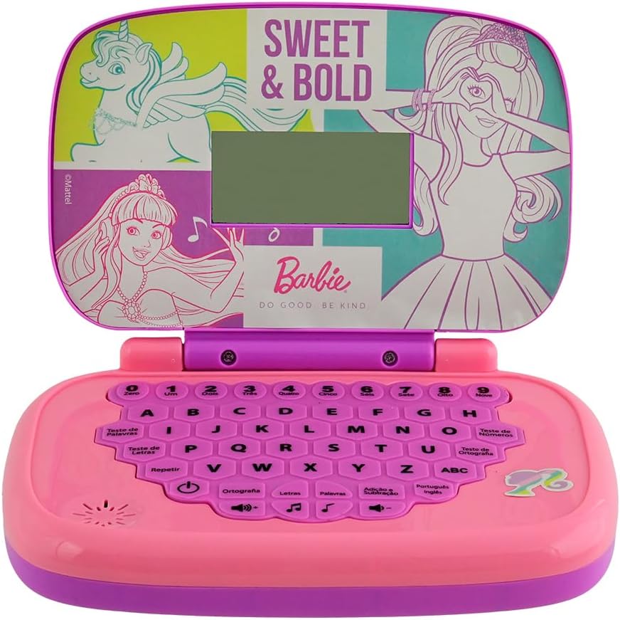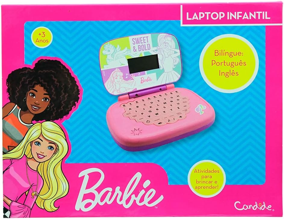 Você pode aprender brincando com o laptop da Barbie! Este fashion laptop infantil é bilíngue (português e inglês) e possui diversos grupos de atividades, como: soma e divisão, perguntas e respostas, letras, palavras, ortografia e música! A brincadeira vai ficar muito mais divertida! Desde 1968, a Candide atua no segmento de brinquedos, sendo a escolha nº 1 para diversão e aprendizado!