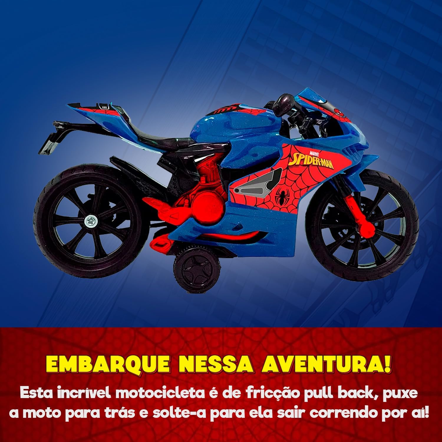 ACELERE COM O HOMEM-ARANHA. Inspirada no super-herói mais ágil de todos, essa moto traz um design arrojado e cheio de detalhes autênticos.