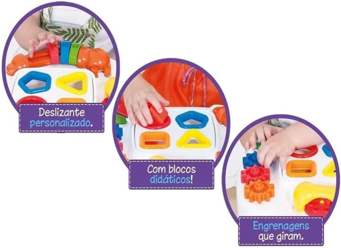 Com blocos didáticos. Possui deslizante personalizado, telefoninho, blocos didáticos e engrenagens que giram