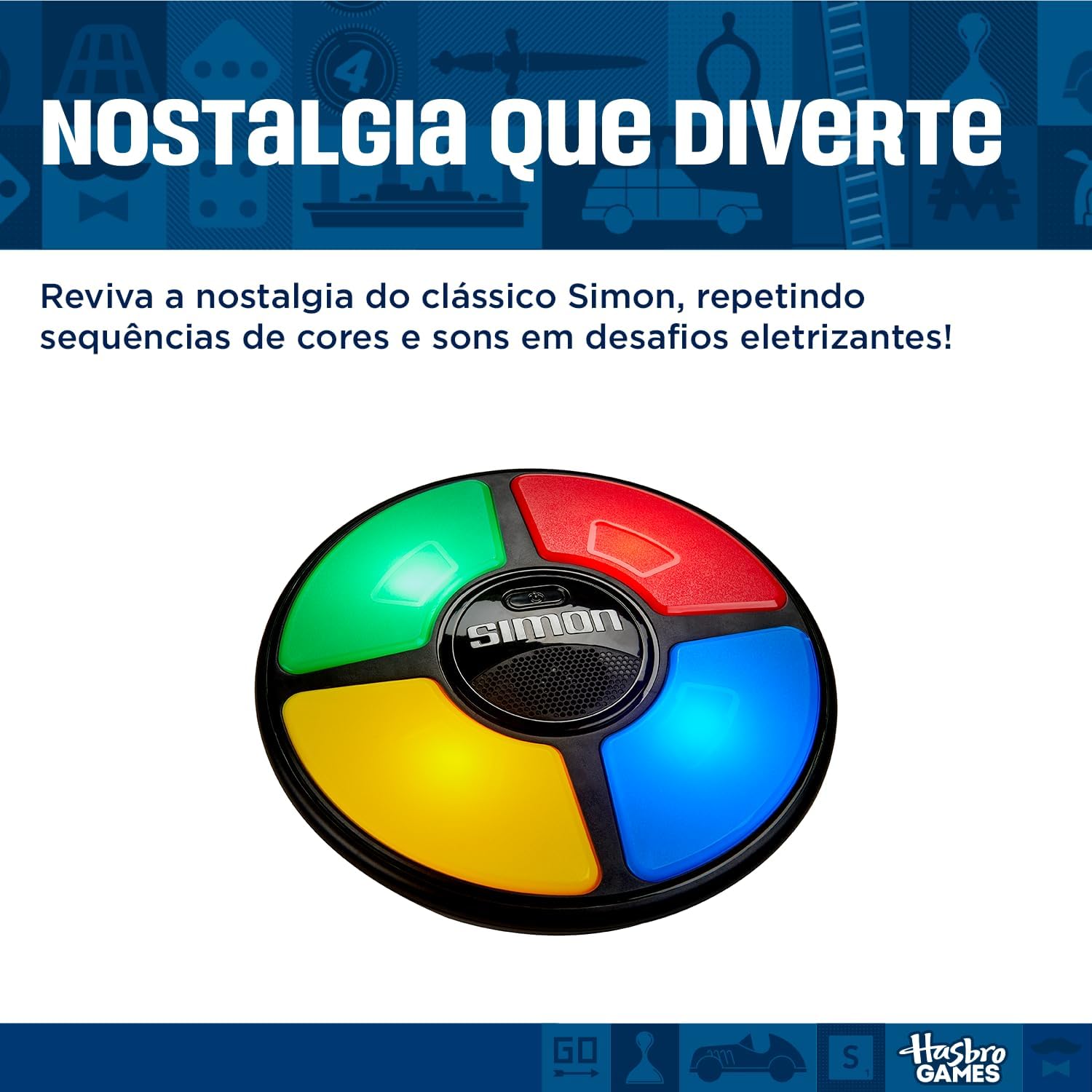 CLÁSSICO QUE VOLTOU. O jogo de memória eletrônico Simon, da Hasbro Games, traz sons e luzes desafiadores para crianças a partir de 8 anos. Um brinquedo que marcou gerações e continua conquistando novas.