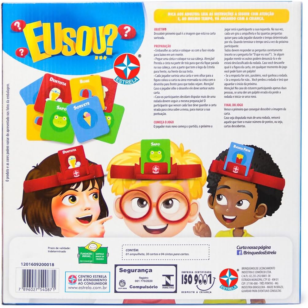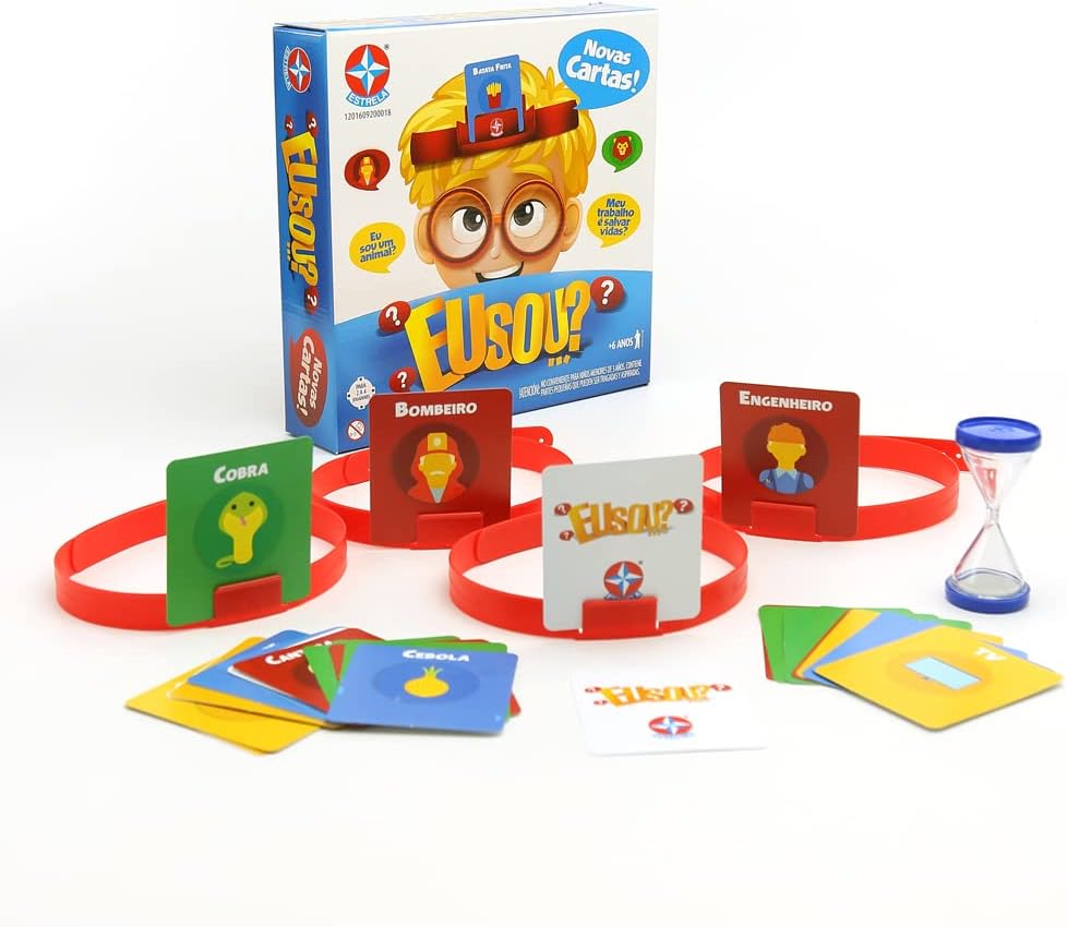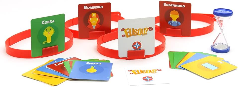 Eu sou… verde? Eu sou… um animal? Descubra qual é a imagem da sua carta fazendo perguntas para os outros jogadores. Contém na embalagem: 1 ampulheta, 30 cartas, 4 cintas para cartas e 1 manual de instruções.