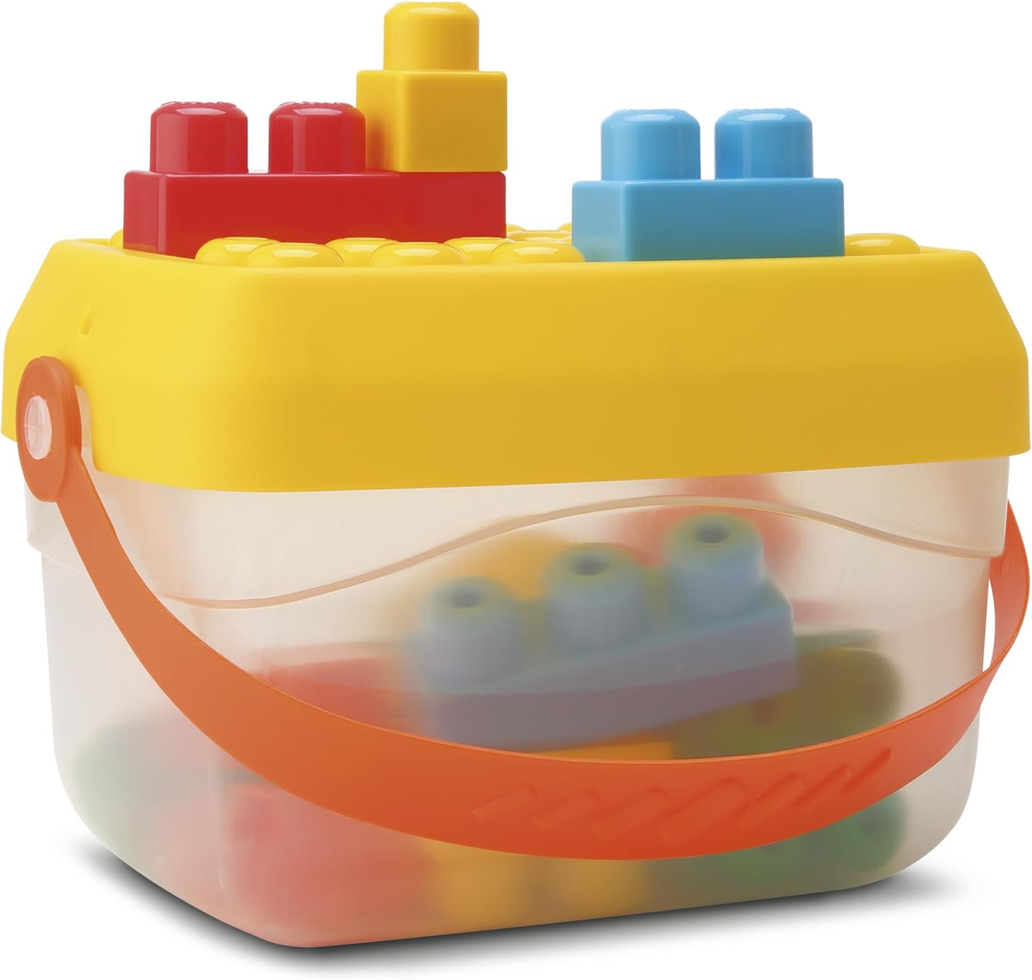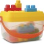 Balde com peças de montar que estimulam a coordenação e a criatividade.