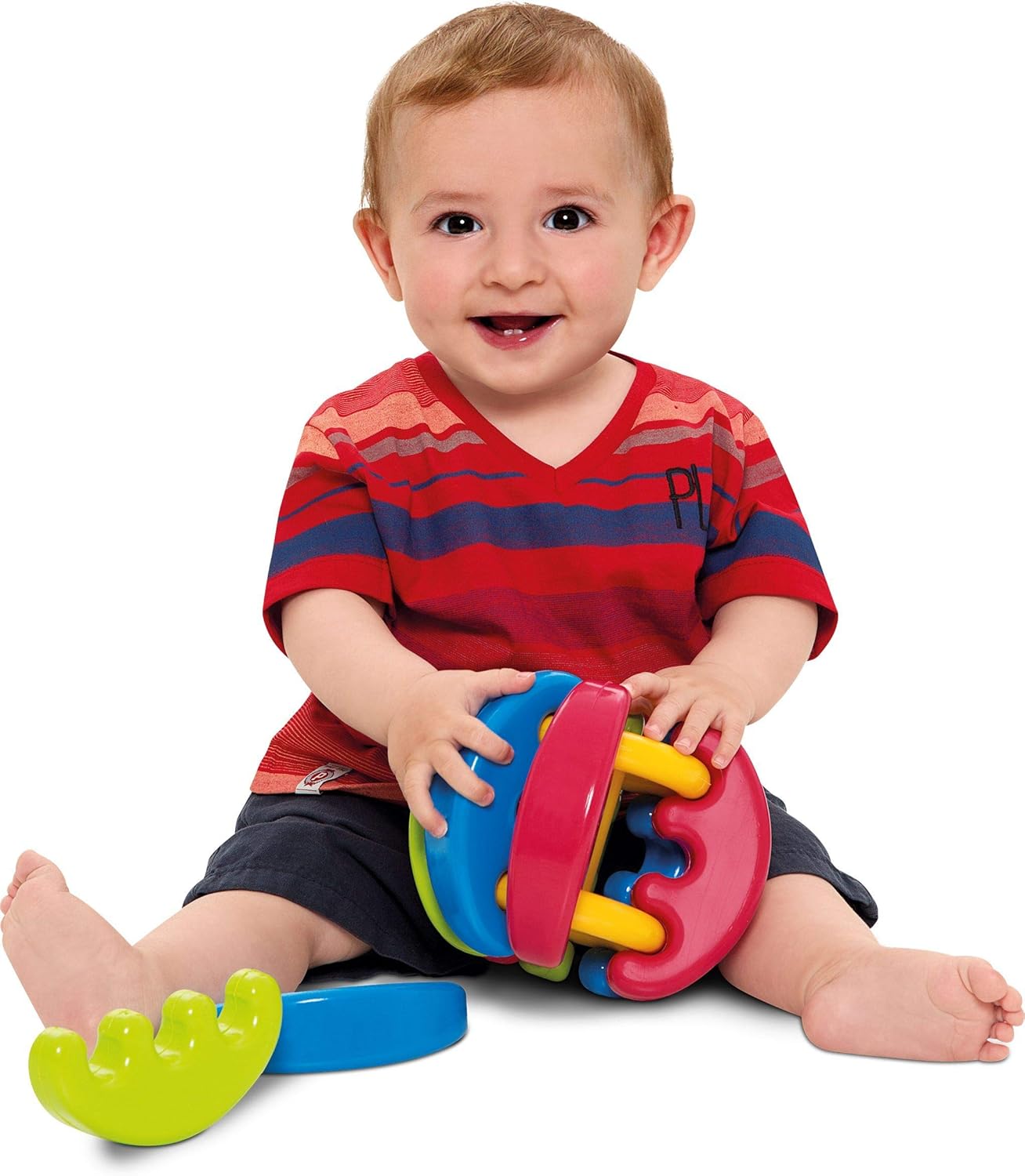 Brinque como uma bola , desmonte e monte os gomos , encaixe os gomos entre eles. Desenvolve: – a percepção, – coordenação motora e -distinção de cores.