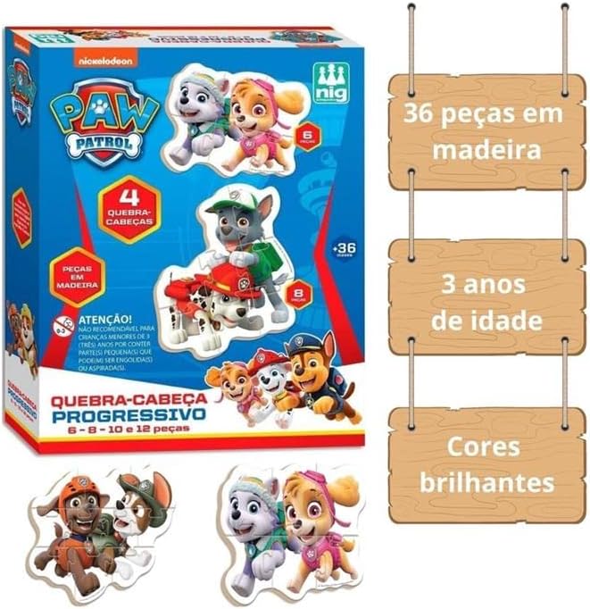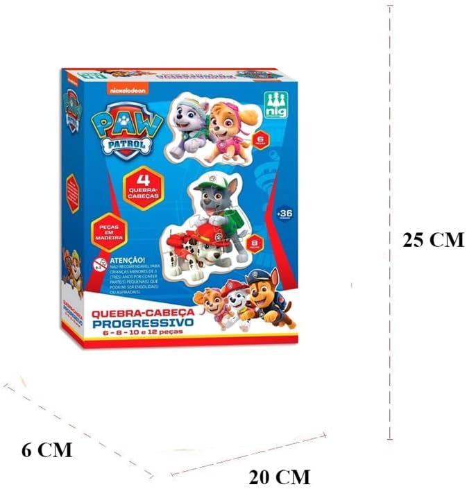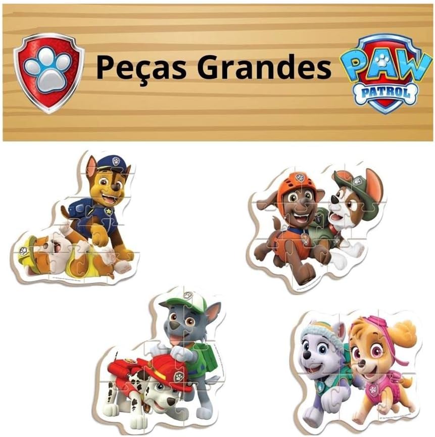 São 04 quebra – cabeças com peças grandes e resistentes. Encaixe progressivo com 06, 08, 10 e 12 peças.