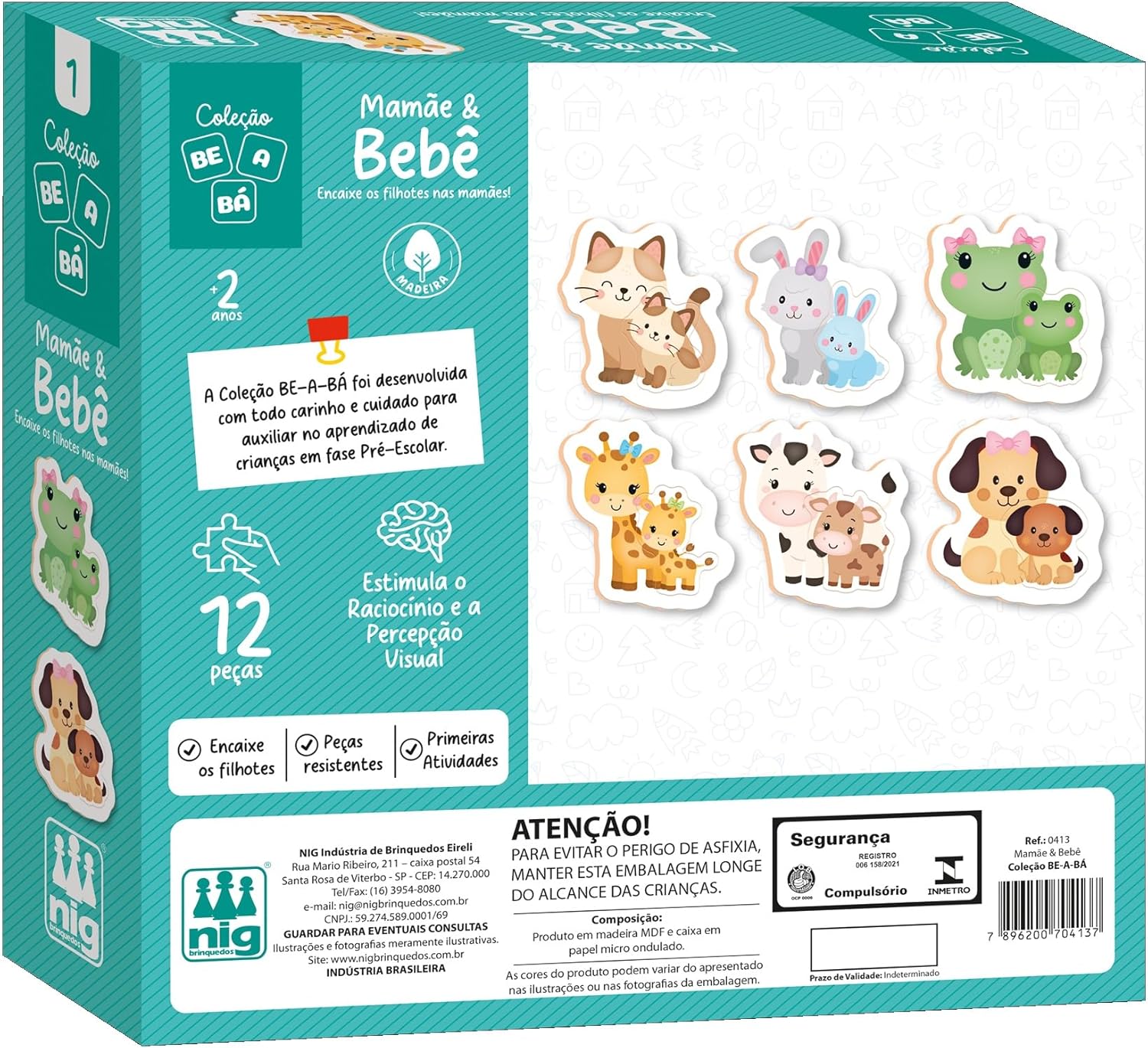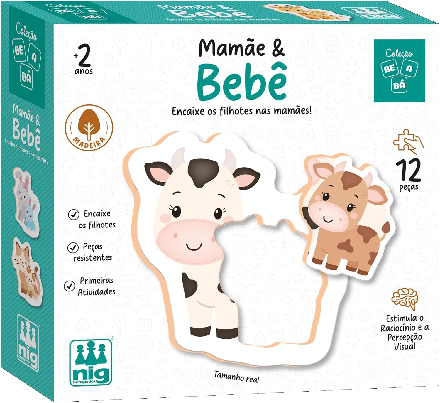 MADEIRA RECICLADA: O jogo Mamãe & Bebê da Nig Brinquedos é confeccionado em madeira reciclada tornando o produto sustentável e muito mais resistente.
