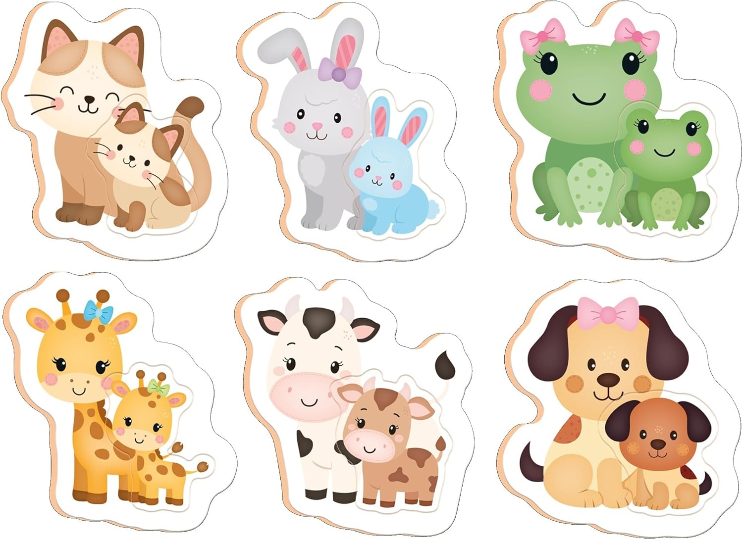 Jogo educativo para a criança encaixar os filhotes nas figuras de seus pais. Desenvolve a coordenação motora, o raciocínio e a percepção visual de forma divertida. Contém 12 peças grandes em madeira reciclada, coloridas e resistentes.