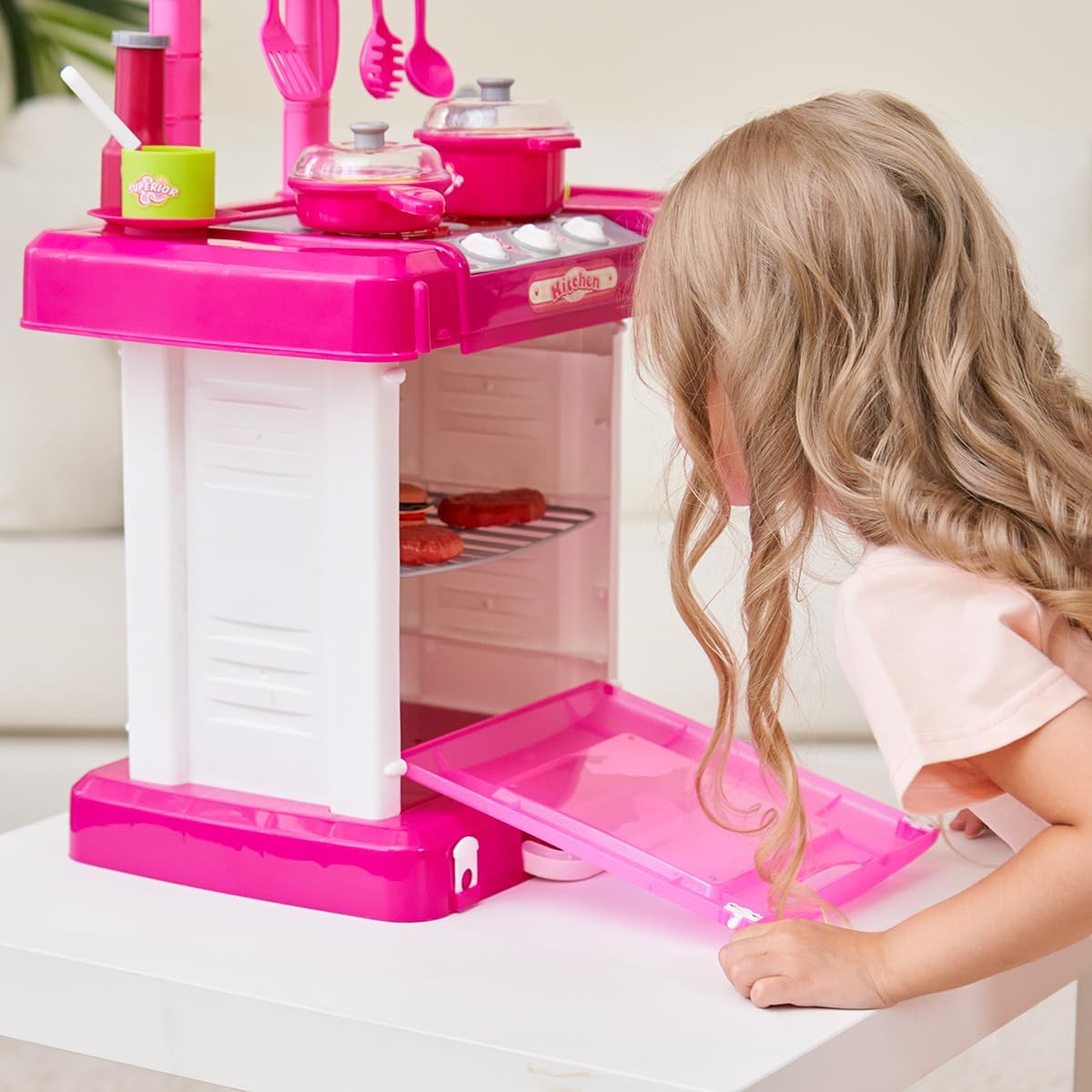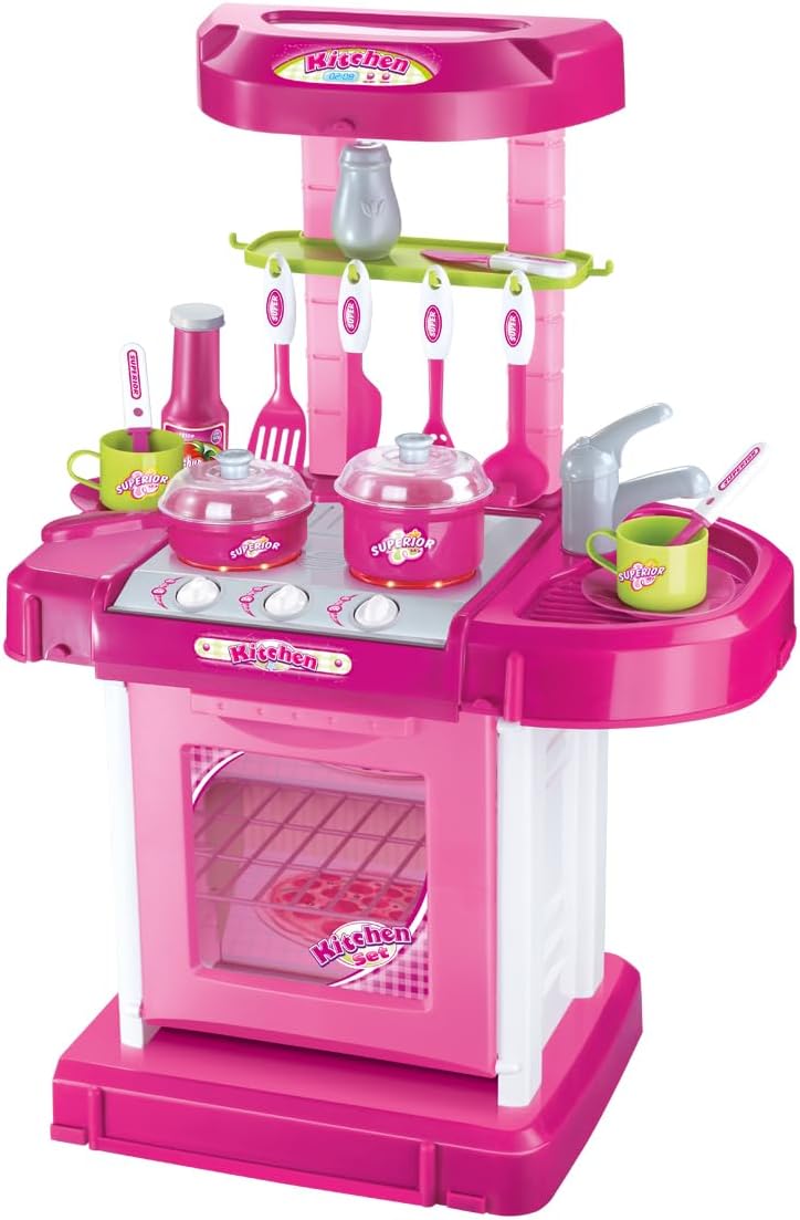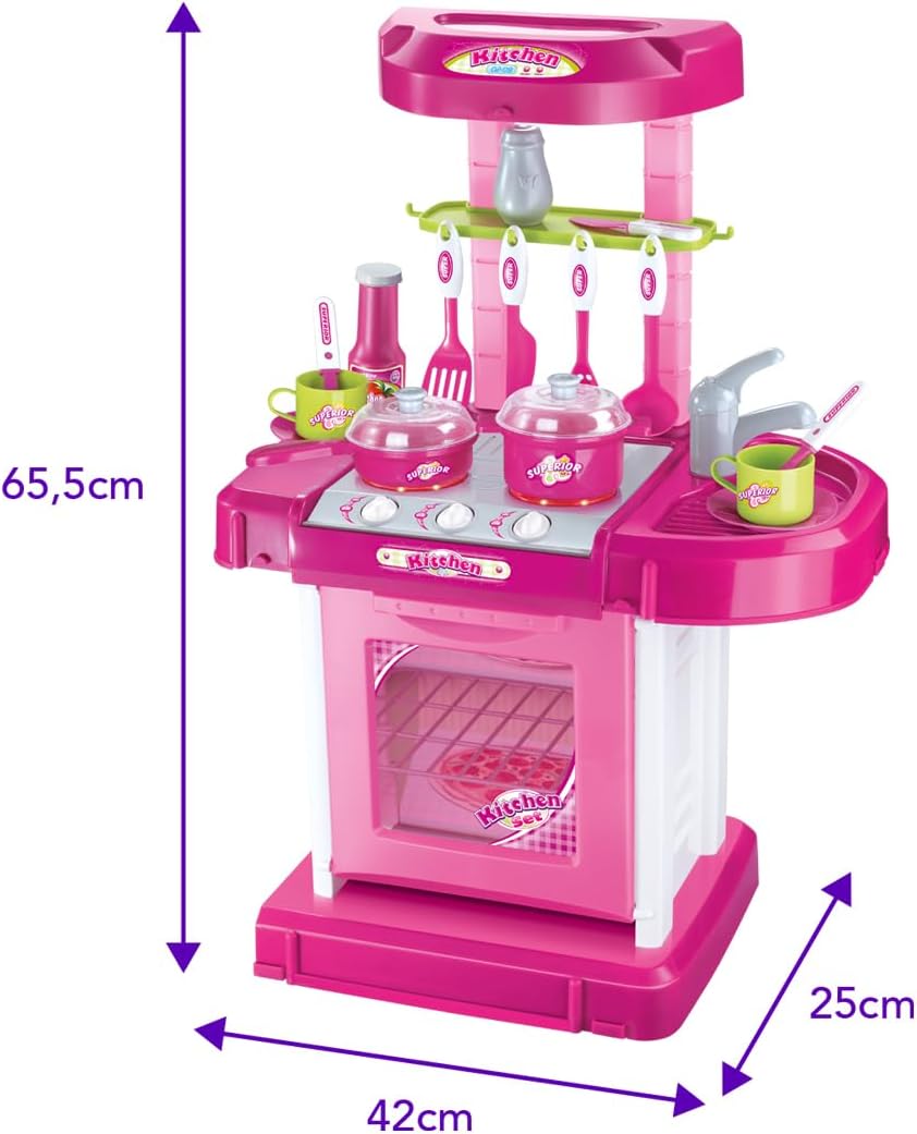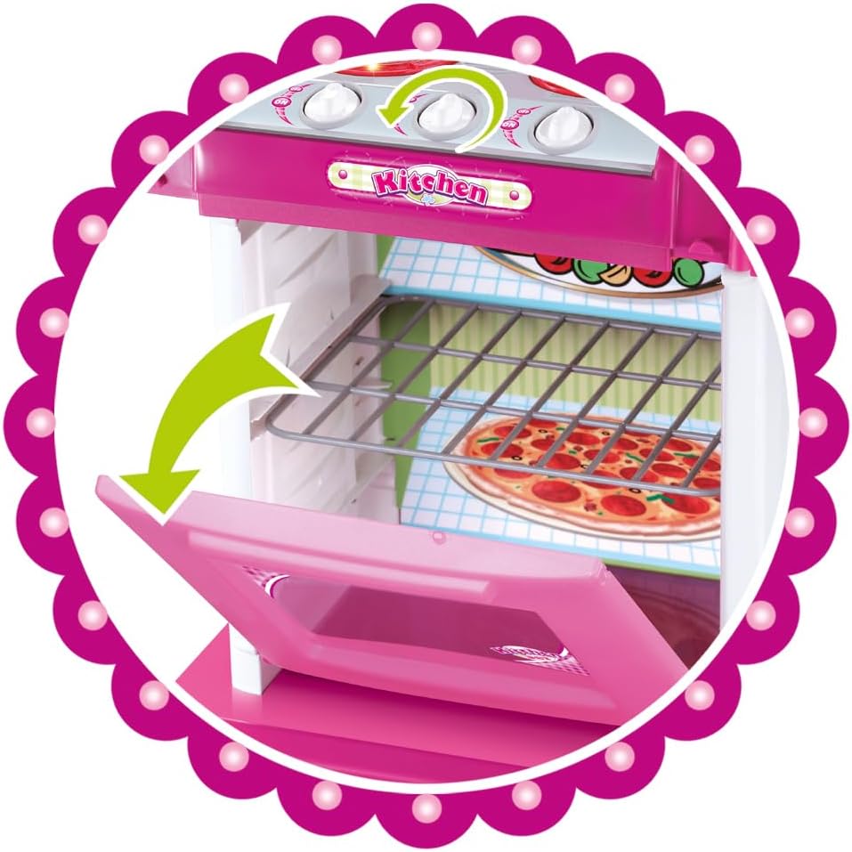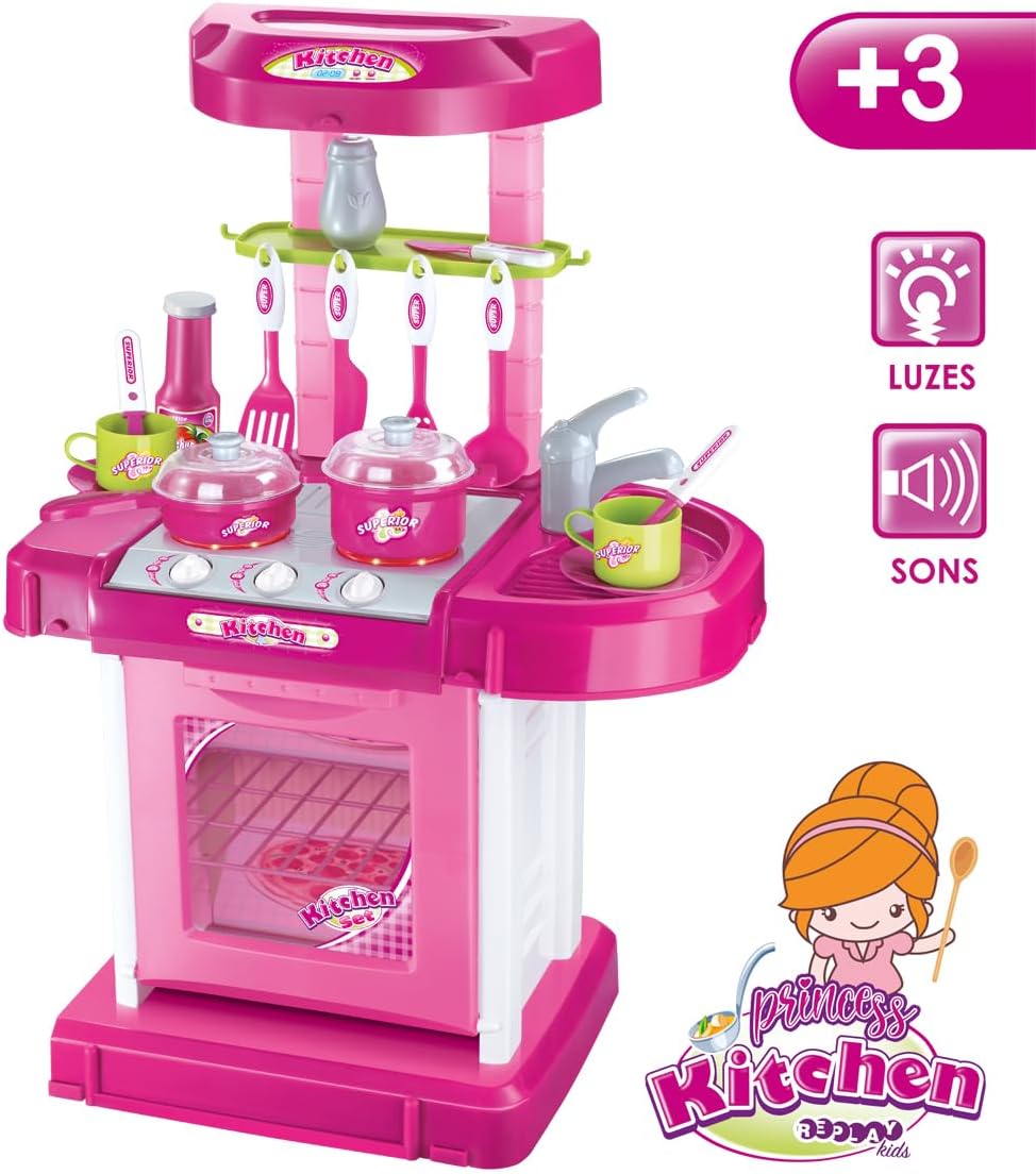 Possui efeito de Som e Luzes – Cozinha Completa com Pia, Fogão e Forno oferecendo uma infinidade de possibilidades para a imaginação das crianças – Necessário 3 pilhas “AA” (não inclusas).
