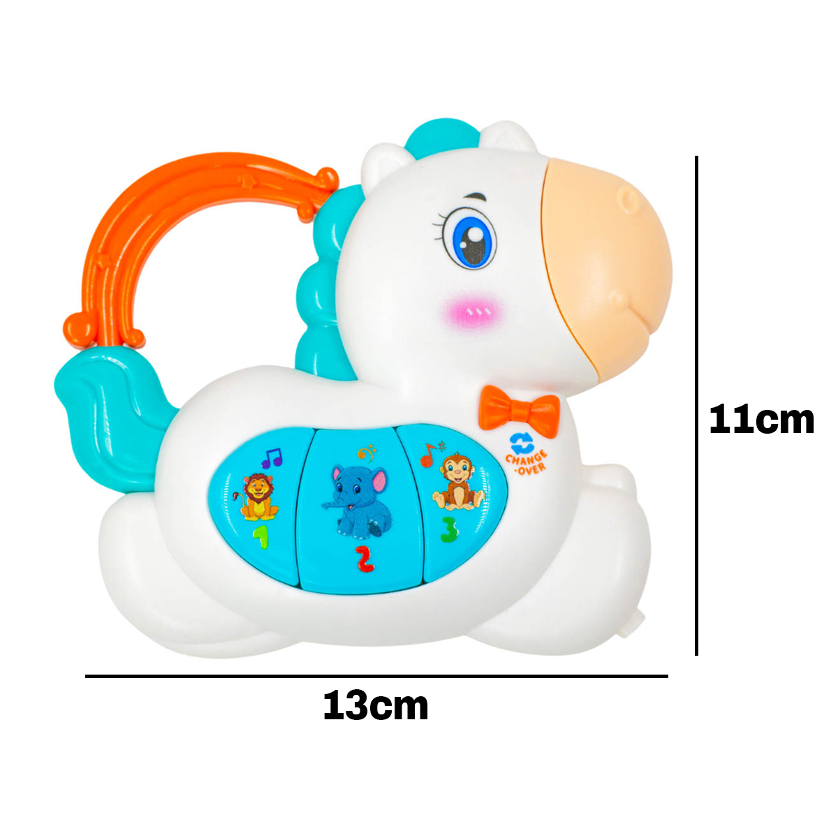 Teclado Piano Musical Bebê Brinquedo Infantil Divertido Som O Brinquedo Musical Teclado estimula a percepção de cores e desenvolvimento sensorial e cognitivo, além de ser uma diversão garantida para crianças. Os Sons emitidos despertam a criatividade dos pequeninos, ajudando no desenvolvimento auditivo e coordenação motora. Com lindas melodias, cores vibrantes, texturas suaves, despertando a atenção e interesse do pequeno. Atenção: Não Recomendado para Menores de 18 Meses Especificações Técnicas: – Modelo: Brinquedo Musical Teclado Cavalinho CY2219 – Material: Plástico, Componentes Eletrônicos. – Funções: 3 com 3 sons diferentes. – Teclas: 4 – Alimentação de Energia: 2 Pilhas AAA(Não Incluso) – Certificação Inmetro / Selo de Segurança: CE-BRI/INNAC – 02484-01A – Dimensões Aprox.: 13cm (Largura) X 11cm (Comprimento) X 3,5cm (Profundidade) – Peso Aprox.: 100g Itens Inclusos na Embalagem: – 01x Brinquedo Musical Teclado