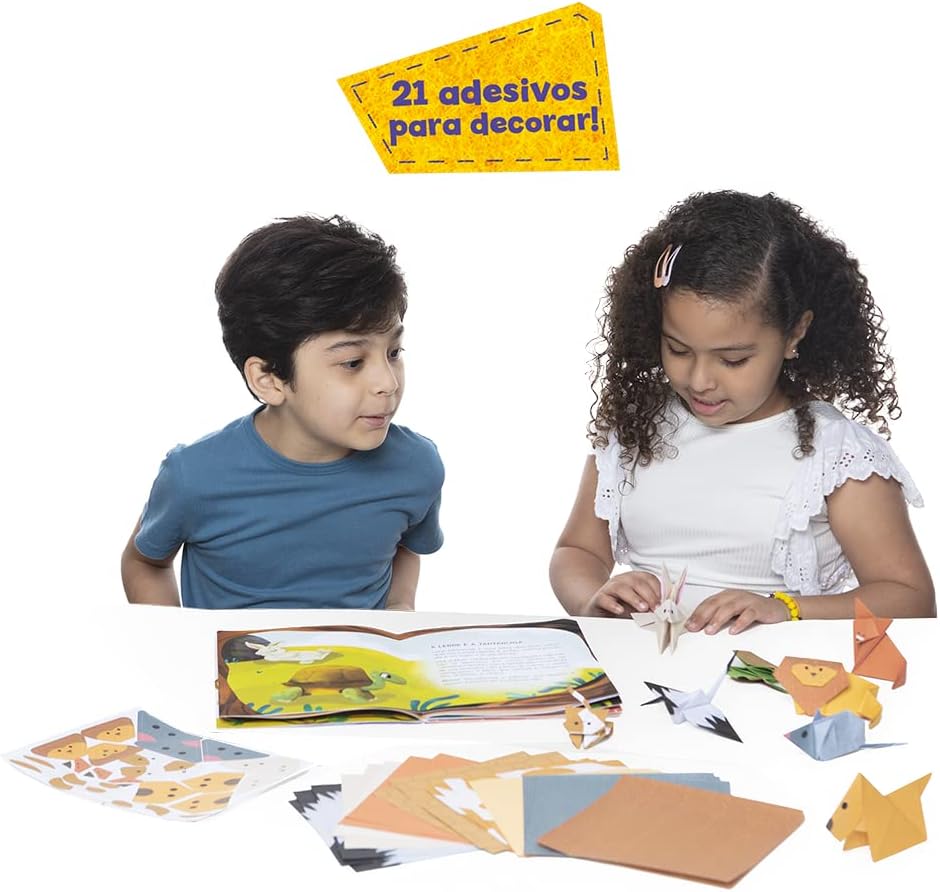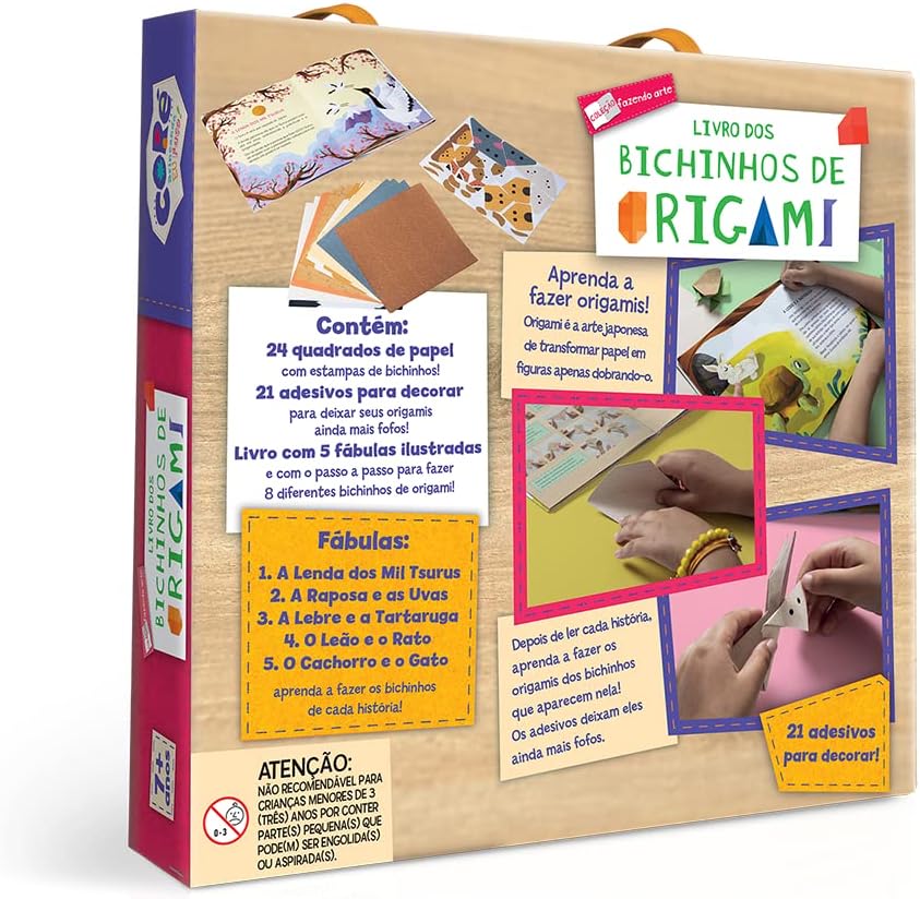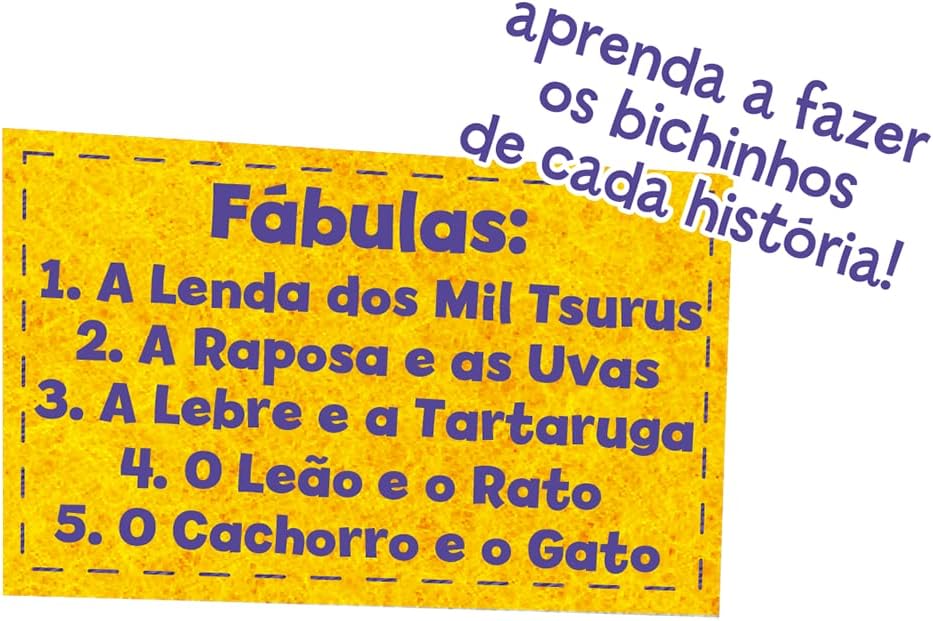 São cinco fábulas de animais que vêm com papel de origame para se divertir;