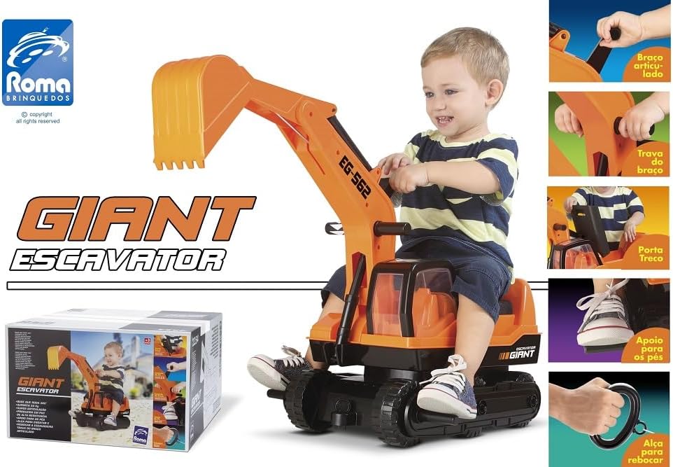 Trator Giant Escavator até 50kg, unidade. Marca: Roma. Característica do produto: carros e veículos, cenários e carrinhos. Número do produto: 57237.